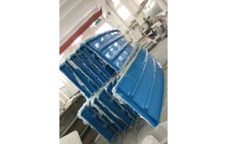 玻璃鋼拱形蓋板(外表防紫外線藍色膠衣層)待切割打磨整理